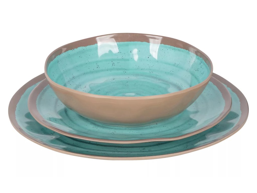 Luxusní 12-dílná melaminová jídelní souprava zn. Bo-Camp modro-hnědá.