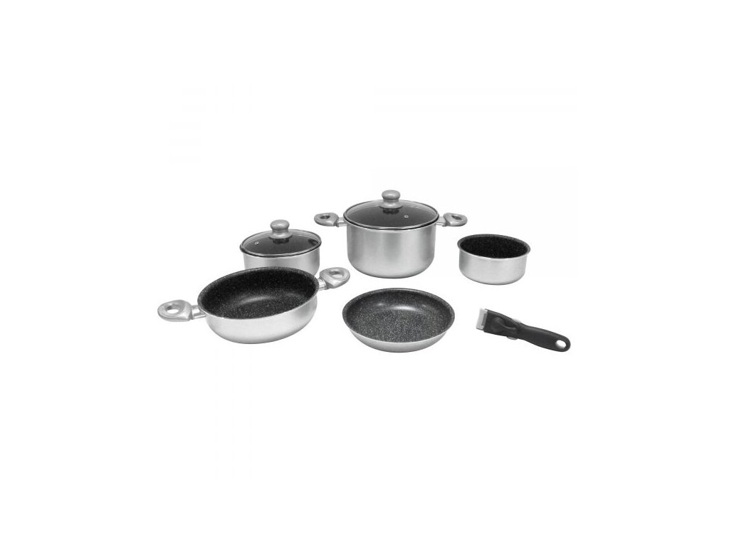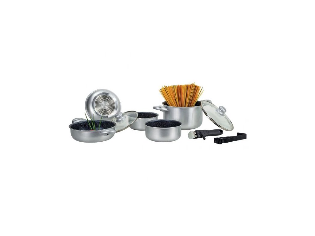 Vysoce kvalitní hliníková sada hrnců s nepřilnavým povrchem a vhodná i na indukční vařiče.