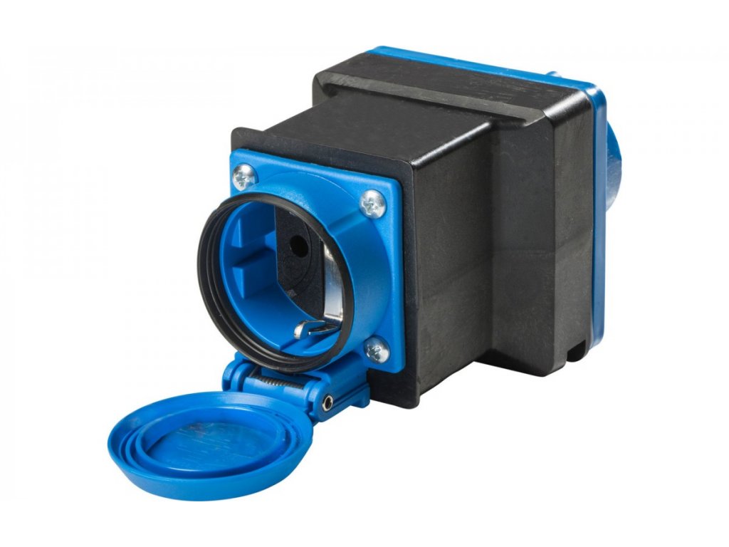 Na jedné straně je CEE zástrčka (pro připojení do odběrního místa v kempu) a a druhé je schuko zásuvka s víkem.