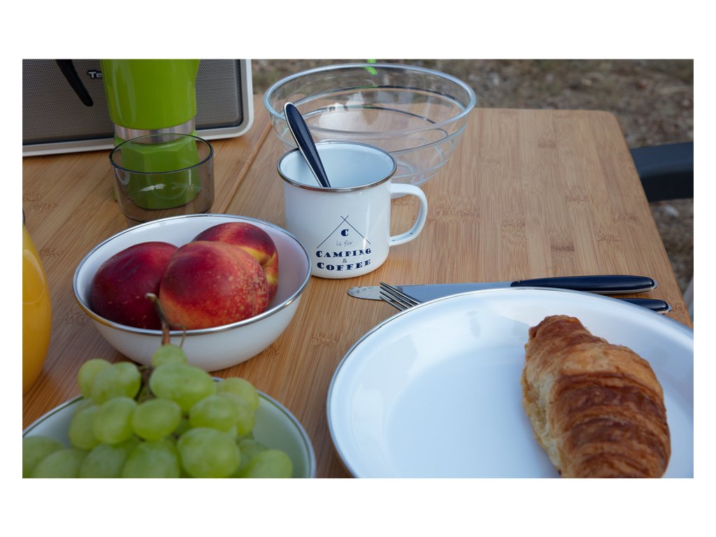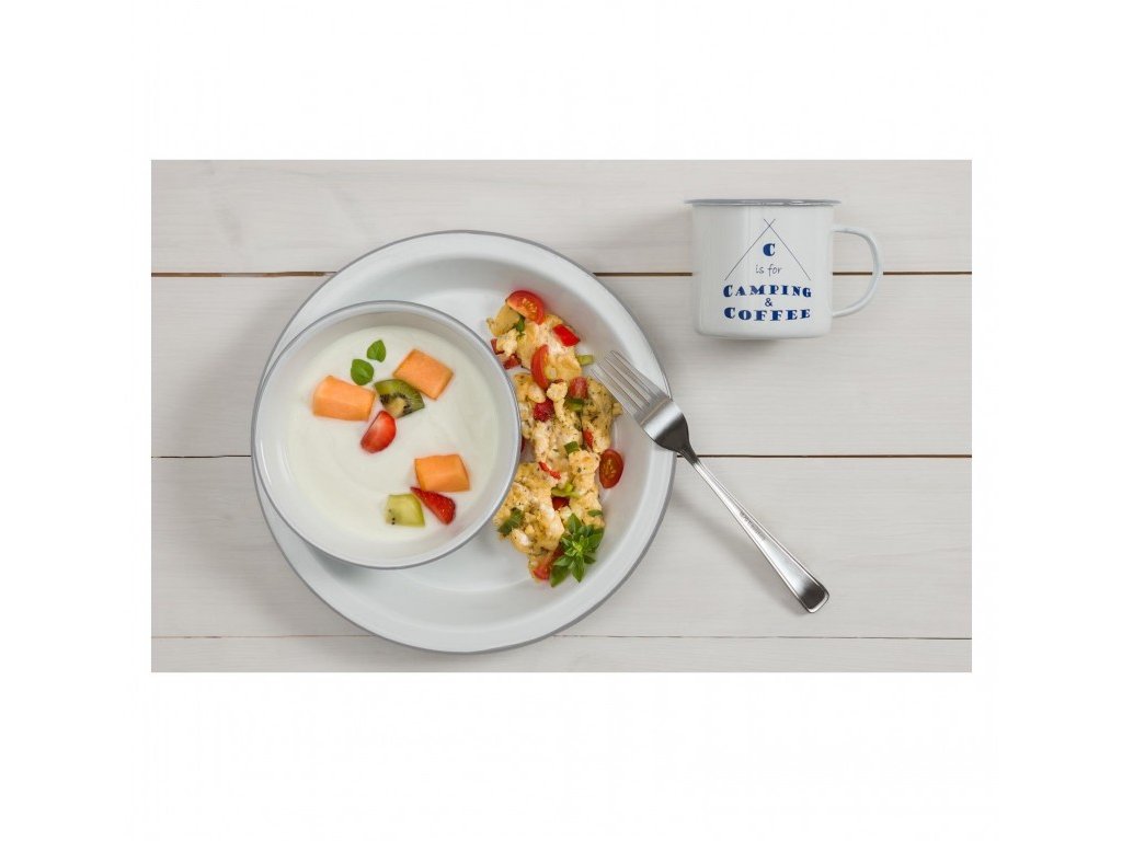 3dílná sada nádobí se smaltovaným povrchem pro jednu osobu v trendy kempovém designu. Je nenáročná na péči, necitlivá na rozbití a nezpůsobuje rachot. Není vhodné pro ohřev v mikrovlné troubě. Odolný vůči teplotám od - 20 ° C do + 70 ° C.