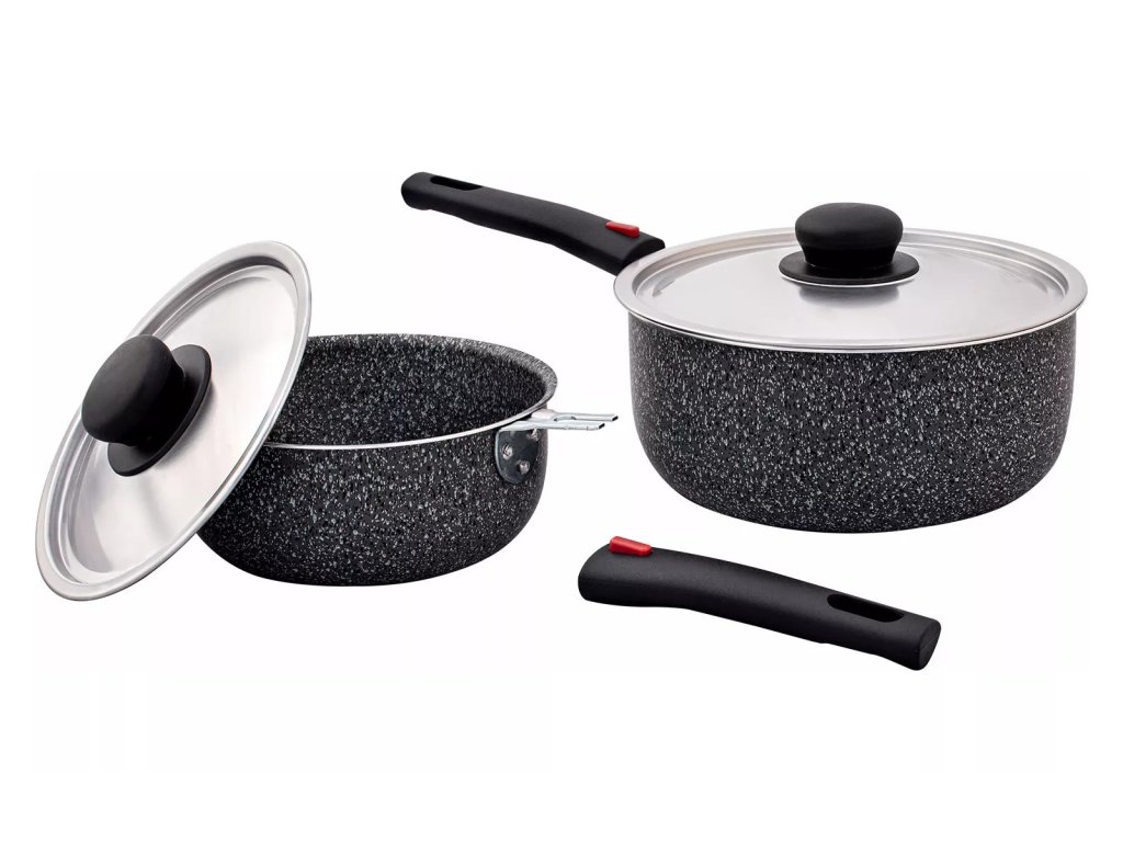 Stohovatelná sada hliníkových hrnců s odnímatelnými rukojeťmi a nepřilnavým povlakem Stone Rock
