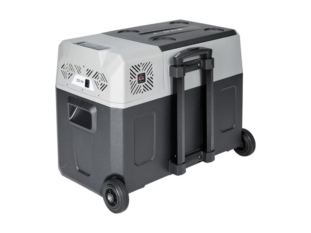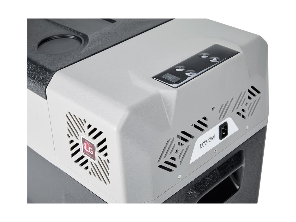 Ekologický provoz pro ještě menší emise hluku a nižší spotřebu energie. Díky vozíku je přeprava chladicího boxu hračkou, i když je plně naložený. Zapuštěné úchyty integrované na bocích jsou začleněny takovým způsobem, že nezvyšují velikost chladicího boxu a jsou necitlivé na nárazy. Víko slouží jako malý stůl a díky integrovaným držákům nápojů nabízí chytrou doplňkovou funkci. Ve spodní části úložného prostoru je vypouštěcí ventil, který vám pomůže vyčistit chladicí box. Box má také vestavěný monitor baterie.
