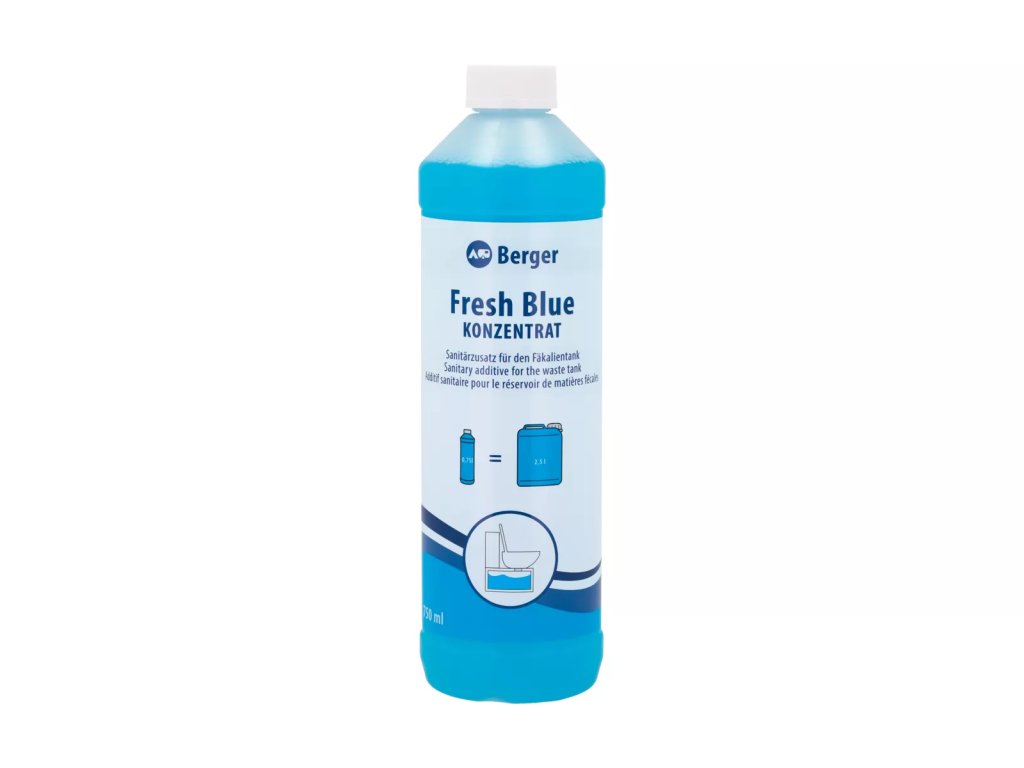 Berger Fresh Blue je velmi účinná, koncentrovaná kapalina pro odpadní nádrže kazetových a kempinkových toalet.