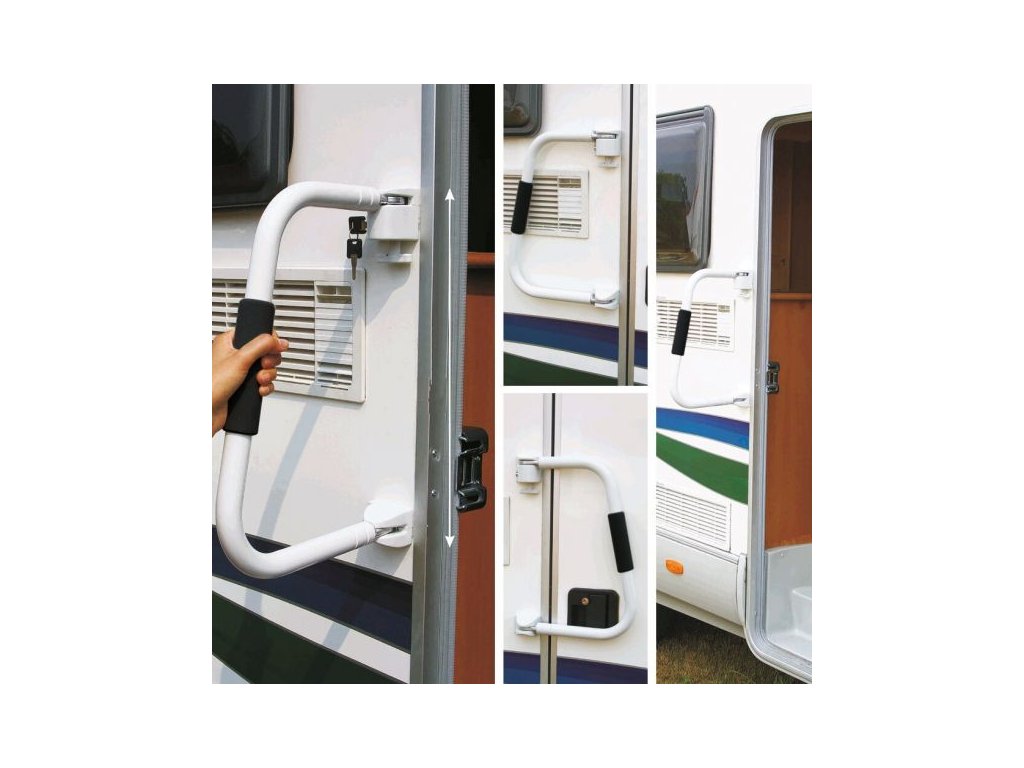Optimal für sicheres Ein- und Aussteigen in das bzw. aus dem Fahrzeug. Aus solidem, eloxiertem Aluminium ø 30 mm, Stärke 2 mm. Über die Tür geklappt schützt er vor Einbruch, indem er mit dem mitgelieferten Schloss verriegelt wird. Verhindert die zufällige Öffnung der Tür während der Fahrt. Passt für alle Türen mit rechter und linker Öffnungsvorrichtung.