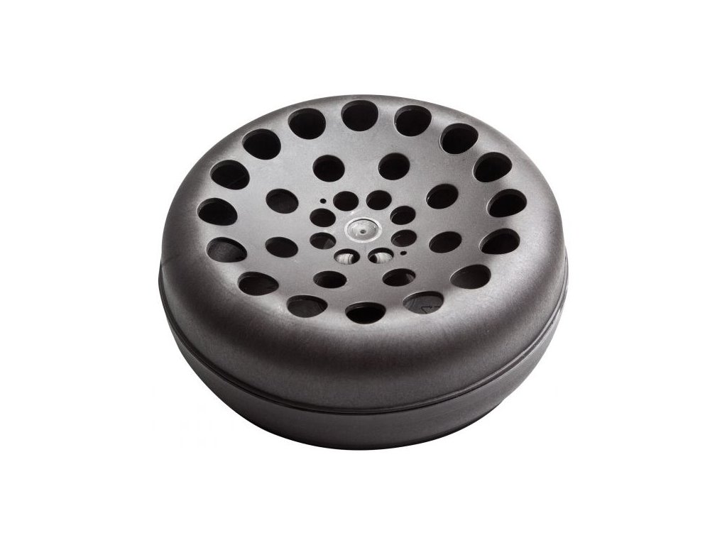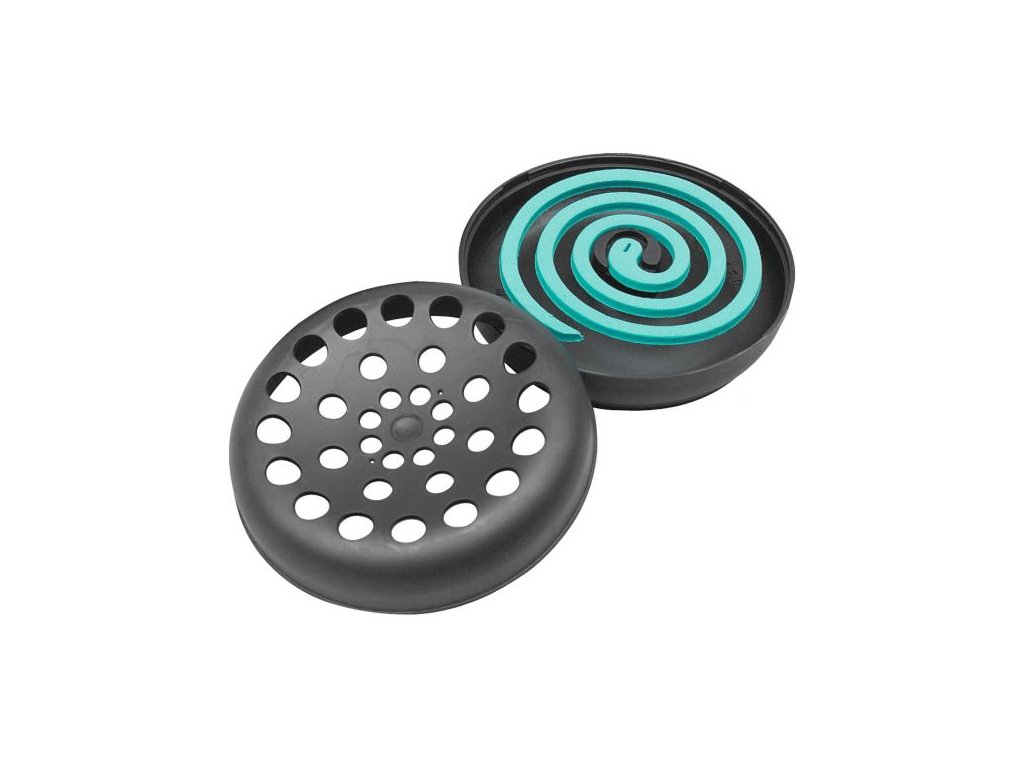 Tepelně odolná plastová nádoba. Chrání před poškozením ohněm, shromažďuje popel a zajišťuje rovnoměrné rozložení účinné látky z cívek proti komárům.