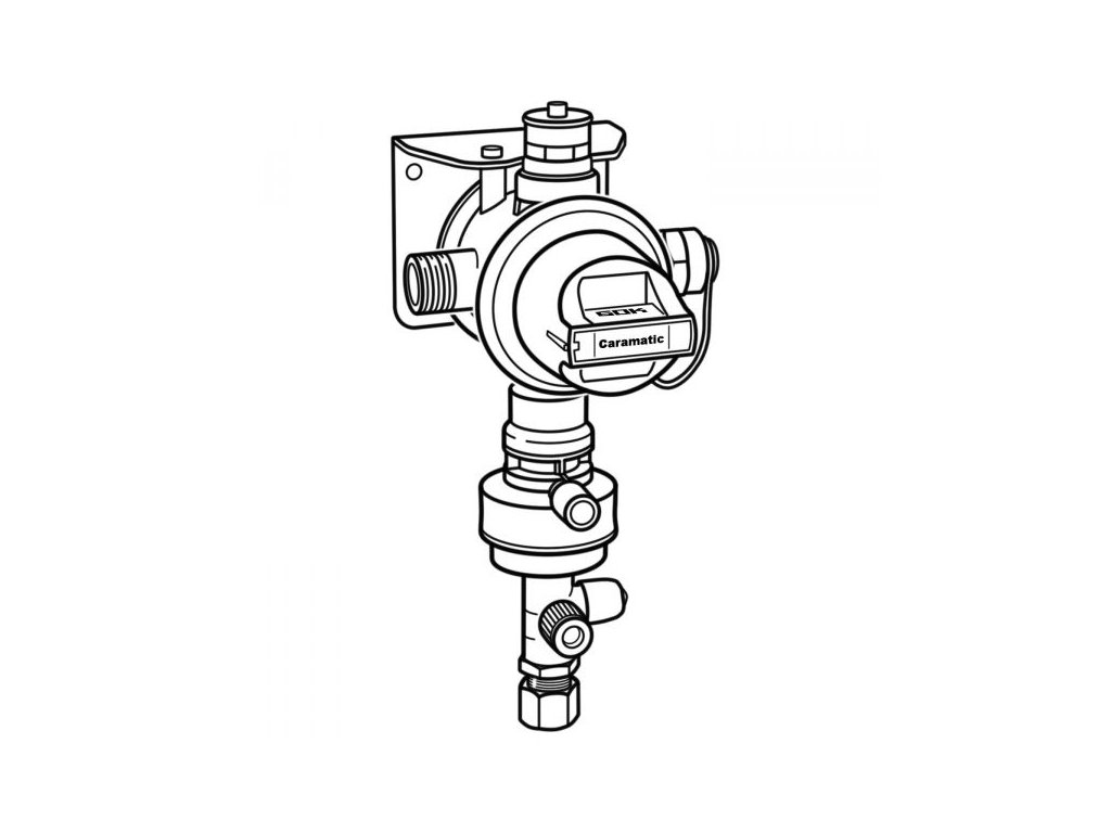 Bestehend aus: automatischem Umschaltventil, Niederdruckregler mit Sicherheitsabblaseventil PRV, mechanischem Crash-Sensor mit neuer Pendellösung, Bedienknopf, Betriebs- und Reserveanzeige, Gasrücktrittsicherung, Prüfeinrichtung und Wandhalterung.