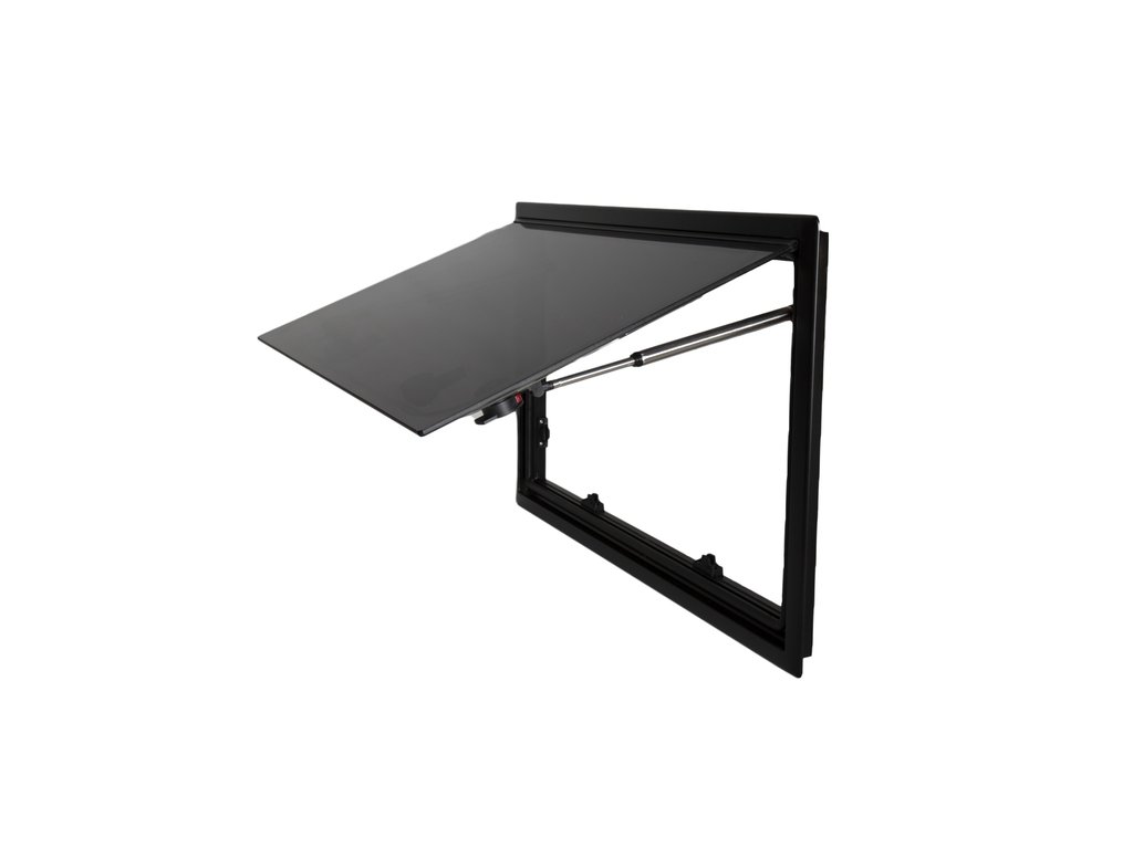 Vysoce kvalitní okna Carbest RW Style se skládají z tónovaného akrylátového skla a černého hliníkového rámu. Dvojité zasklení nabízí nejen dodatečnou ochranu, ale také špičkovou izolaci za všech povětrnostních podmínek. Tabule z černě tónovaného akrylátového skla se zakřivuje dovnitř a je zvenčí v jedné rovině s okenním rámem.