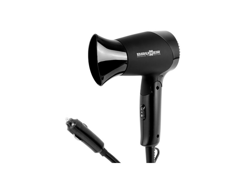 Velmi užitečný cestovní fén. Moderní design s prostorově úsporným skládacím madlem. Odolné plastové pouzdro. Kompletní s vypínačem, zástrčkou do zapalovače cigaret a odnímatelnou hubicí. Součástí je praktická taška na přenášení.