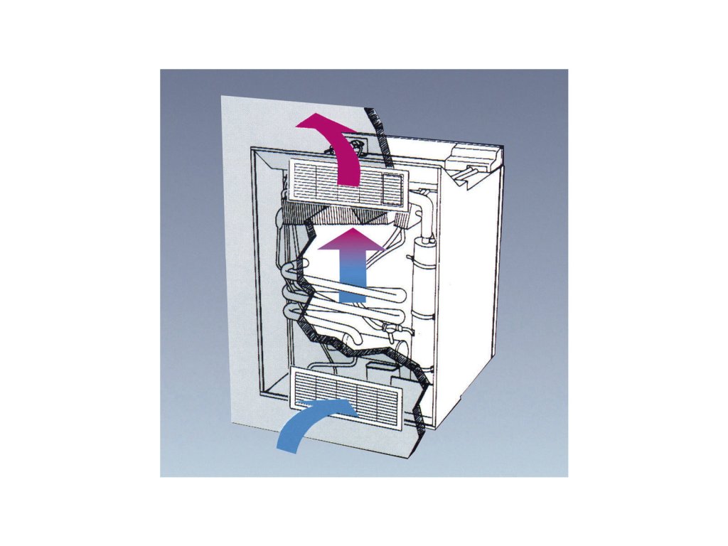 - Spodní mřížka propouští chladný vzduch dovnitř a horní mřížka zase teplý vzduch ven