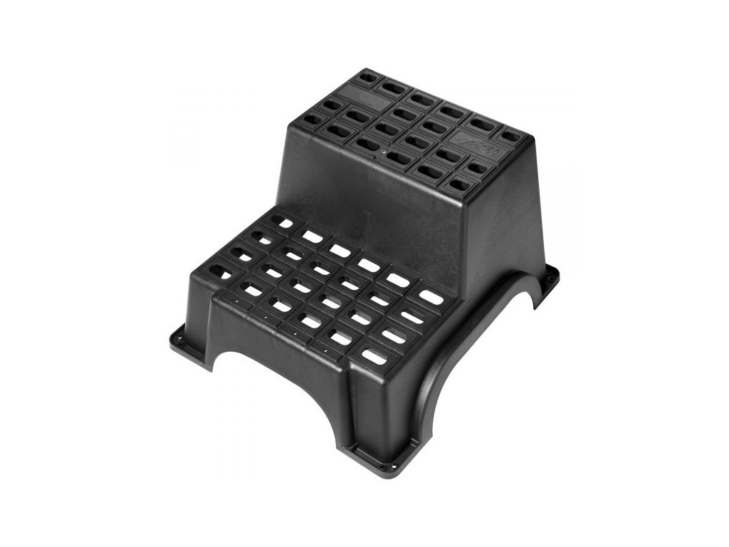 Klasický dvojitý schůdek pro karavany a obytná auta. Schůdek je velmi odolný, je vybavený protiskluzovým povrchem.