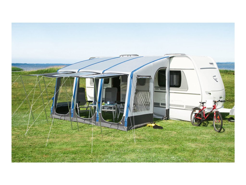Prostorná cestovní předstan DWT Space Air HQ 375 kombinuje stabilitu a pohodlí zároveň. Díky systému přívodu vzduchu lze stan postavit ve velmi krátké době. Robustní a vysoce kvalitní látka HQ dodává stanu pevnou stabilitu. Stan lze zvenčí napnout. Extra velká síťovaná panoramatická okna nabízejí vynikající výhled a lze je otevírat a zavírat pomocí fóliové chlopně jako ventilační kukly.