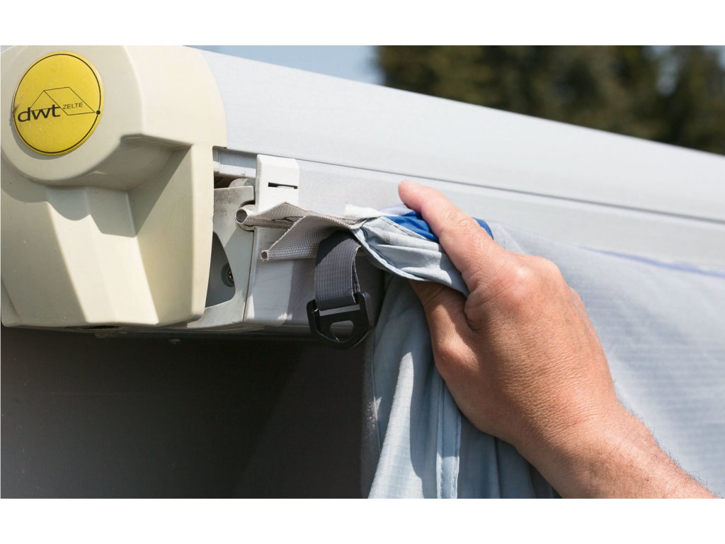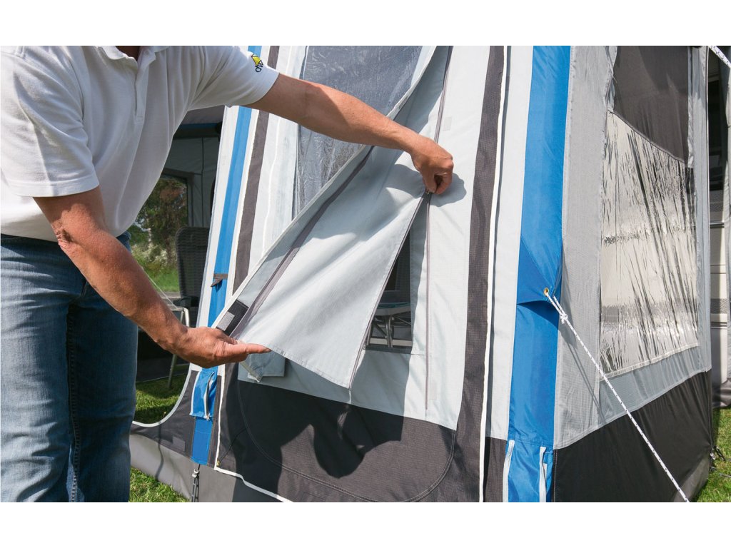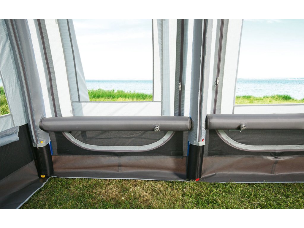 Prostorná cestovní předstan DWT Space Air HQ 375 kombinuje stabilitu a pohodlí zároveň. Díky systému přívodu vzduchu lze stan postavit ve velmi krátké době. Robustní a vysoce kvalitní látka HQ dodává stanu pevnou stabilitu. Stan lze napnout zvenčí. Extra velká síťovaná panoramatická okna nabízejí vynikající výhled a lze je otevírat a zavírat pomocí fóliové chlopně jako ventilační kukly.
