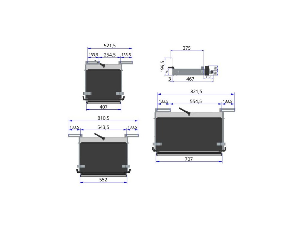 Nášlapná plocha a boční desky nášlapu jsou vyrobeny z eloxovaného hliníku, rohy a hrany jsou zaoblené.