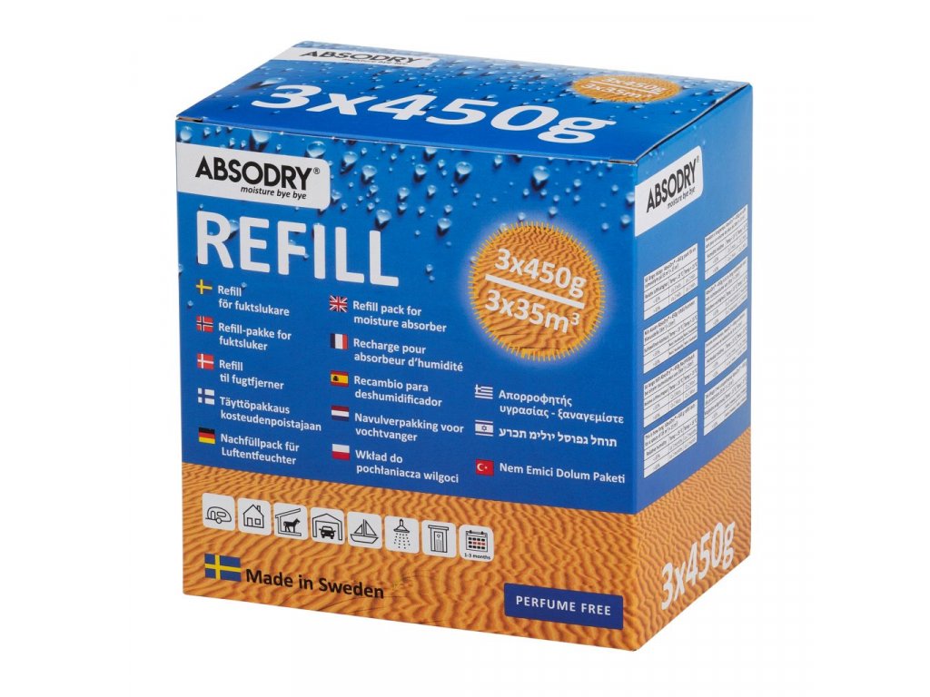 Nabízíme odpovídající doplňovací balíček pro odvlhčovač ABSODRY. Vhodné pro místnosti od 35 do 80 m³.