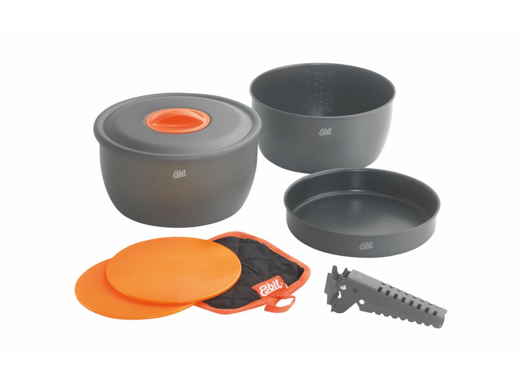 Extrémně lehké nádobí s nepřilnavým povrchem z tvrdého eloxovaného hliníku nabízí vše, co kuchař pod širým nebem potřebuje.