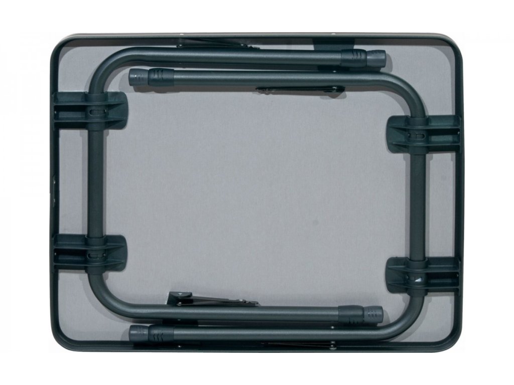 Hliníkový kempinkový stůl s rámečkem a tmavě šedou epoxidovou deskou. Deska je vyrobena z extrémně tvrdé syntetické pryskyřice s výbornou teplotní a chemickou odolností. Na stůl můžete bezpečně odkládat i horké hrnce. Materiál je nejen odolný proti teplu a povětrnostním vlivům, ale i proti vlhku a velmi snadno se čistí.