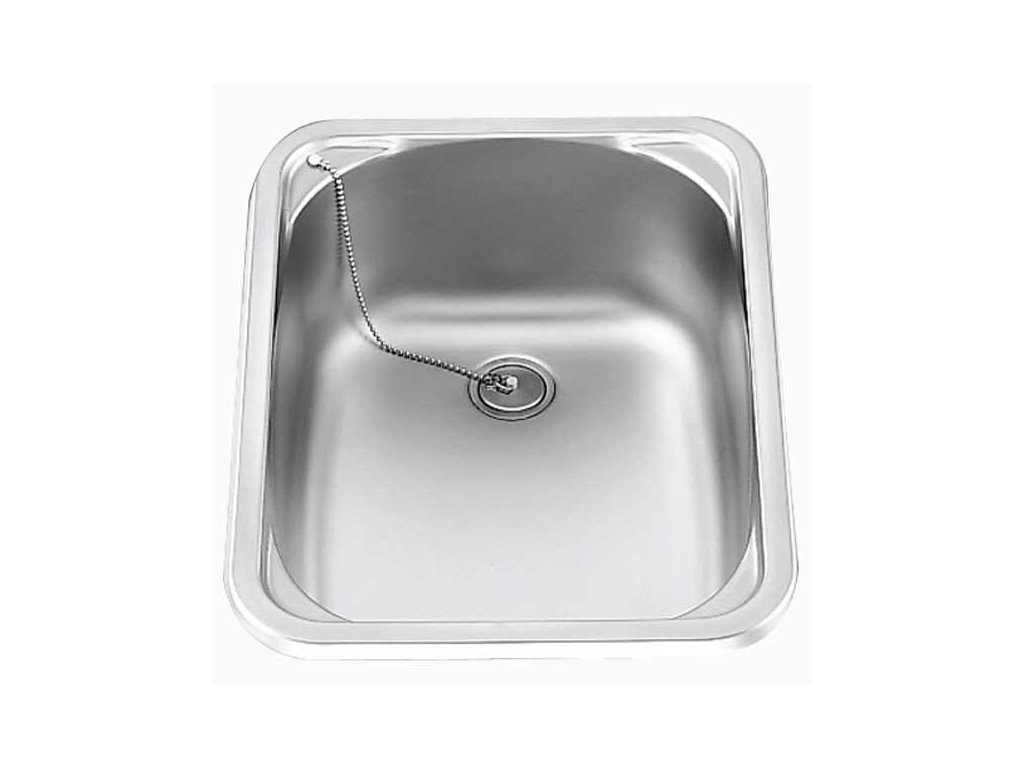 Dřez s odtokovým ventilem, řetízkem, špuntem a gumovým těsněním.