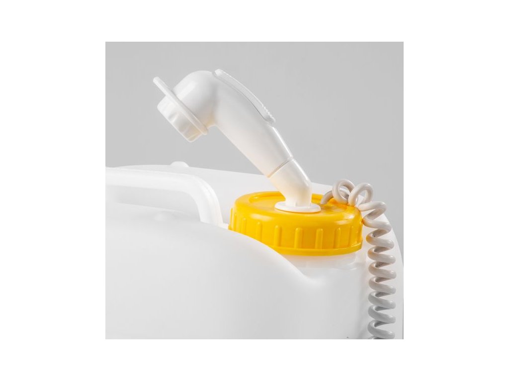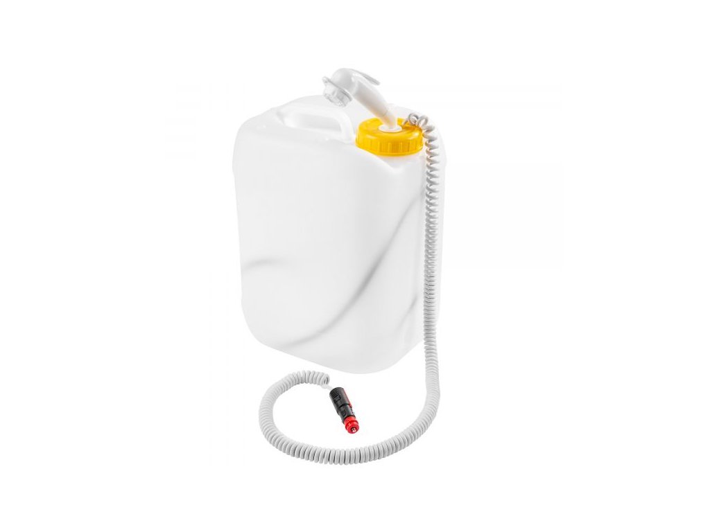 Extrémně snadné použití – zasuňte konektor do 12V zásuvky, vytáhněte hadici z kanystru, zmáčkněte páčku sprchové hlavice mírně dopředu ... a voda již teče.