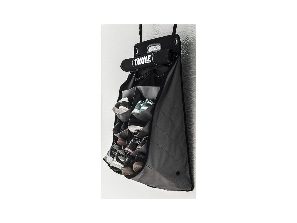 S 10 prostornými úložnými kapsami pro obuv a 2 síťovanými kapsami např. pro čisticí prostředky nebo hadry.