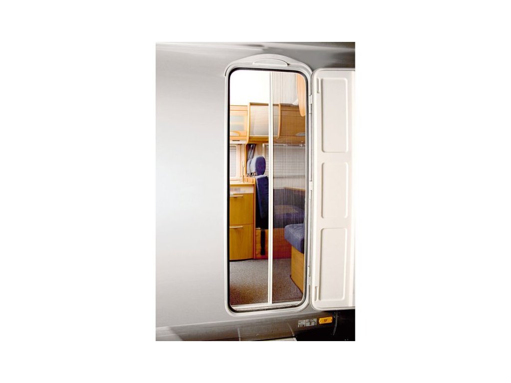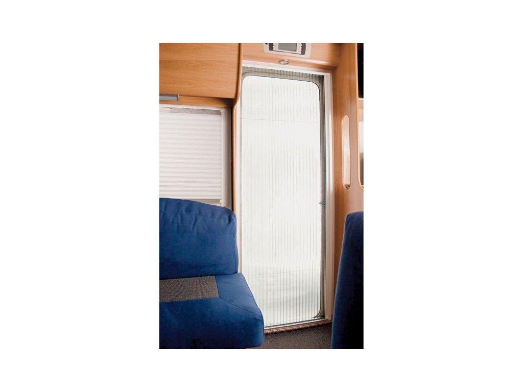 Dvířka sítě proti hmyzu mají bílý hliníkový rám a přesně zapadají do tvaru interiéru. Dveře lze plynule otevírat a zavírat pomocí madla. Bezpečně a snadno se vede v robustních kolejnicích.