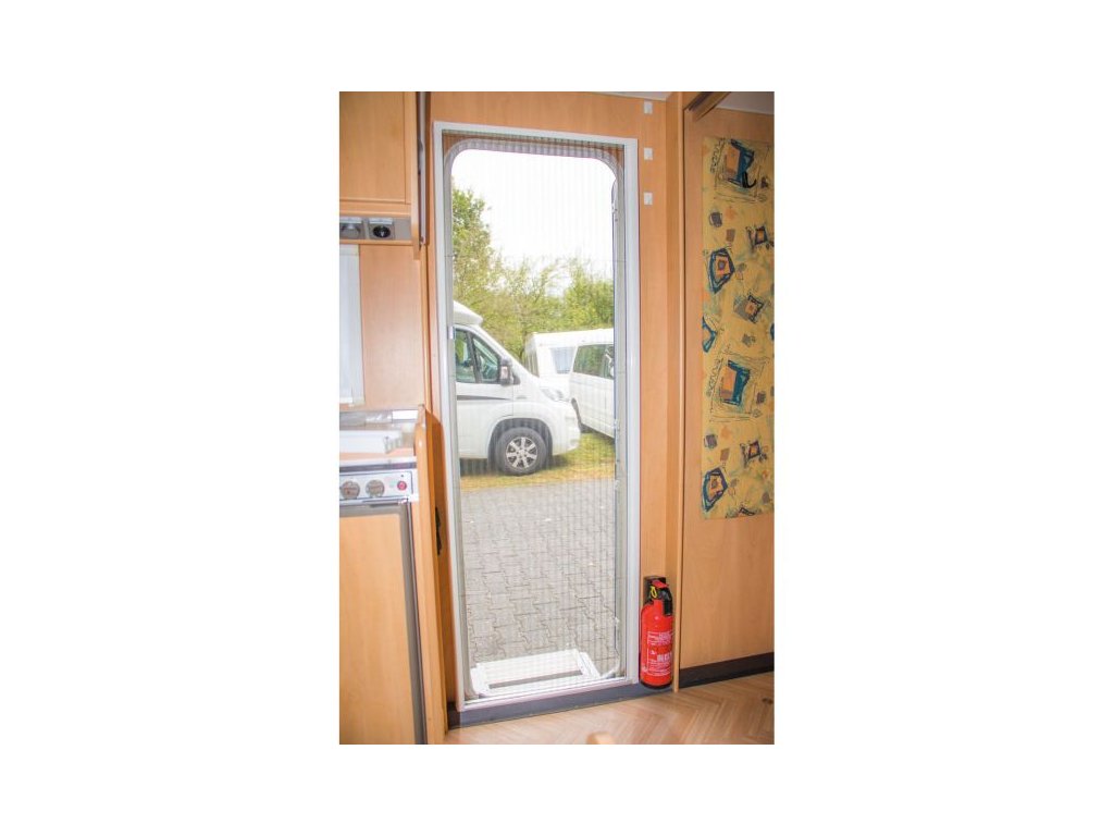 Sítě proti hmyzu mají bílý hliníkový rám a přesně zapadají do tvaru interiéru. Dveře lze plynule otevírat a zavírat pomocí madla. Bezpečně a snadno se vede v kolejnicích.