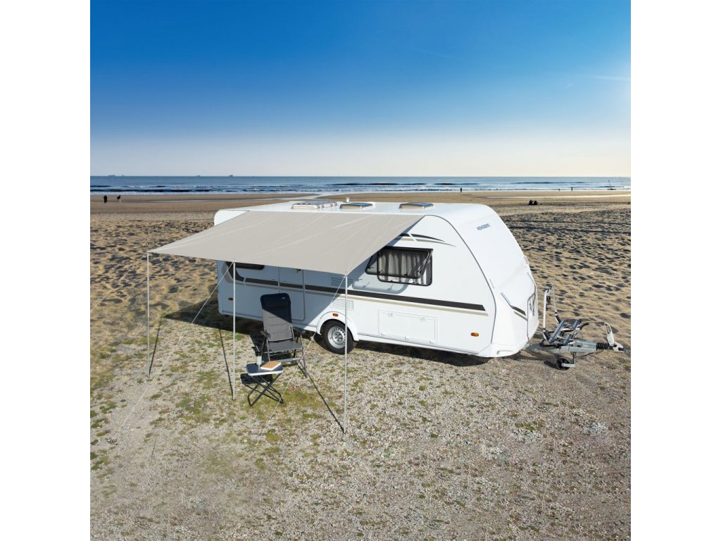 Sluneční střecha mnoha možností - můžete ji použít jako klasickou ochranu před sluncem z boku karavanu, nebo naopak jako zastřešení plynové skříně a oje nebo prostoru za karavanem.