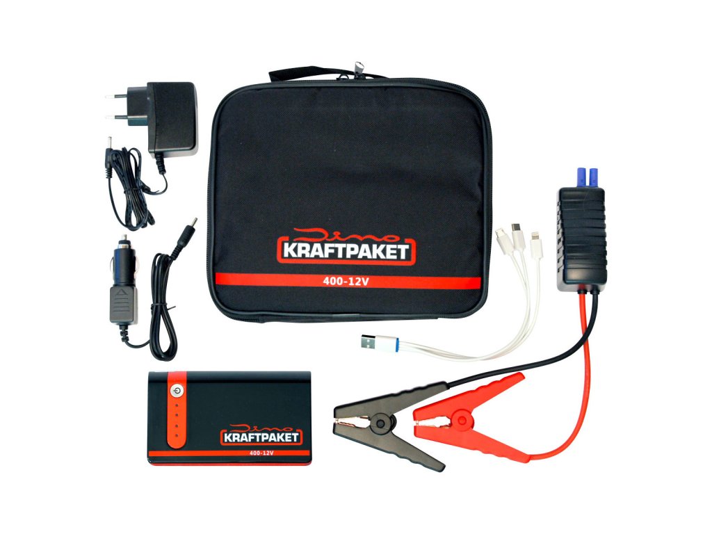 Malý napájecí zdroj Dino s kapacitou baterie 9 000 mAh a špičkovým proudem 400 A pro spouštění všech vznětových motorů do 2,0 litru a benzinových motorů do 3,0 litru. I hluboce vybité baterie vozidla lze snadno externě spustit aktivací funkce boost a zabezpečit inteligentním obvodem se startérem.