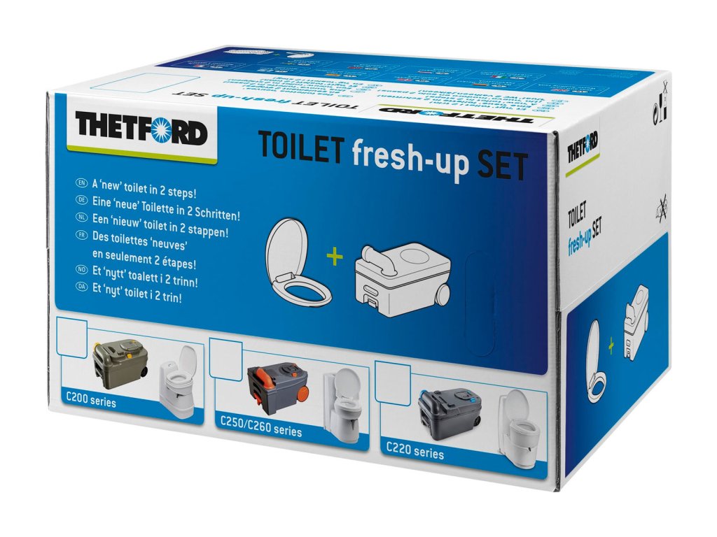 Sada Toilet Fresh-up nabízí 2 hygienické tekutiny zdarma pro čištění vaší toalety. Čistič koupelny odstraňuje usazeniny vodního kamene, které se mohou usazovat na bočních stěnách nádrže dodává povrchům svěží lesk a zajišťuje dokonalou hygienu. Přiložena je také malá brožura s tipy a triky ohledně používání sanitárních tekutin.